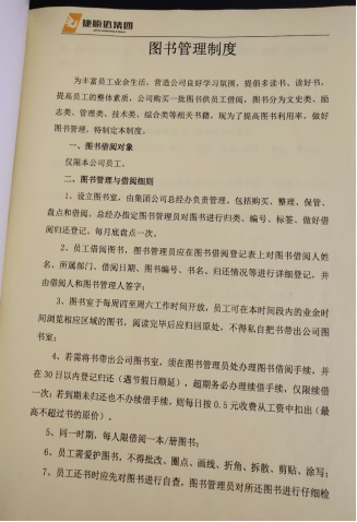 為豐富員工業余生活,營造公司良好學習氛圍,公司于2018年6月購置圖書、建立員工圖書室、制定《圖書管理制度》,并于7月1日正式對員工開放。