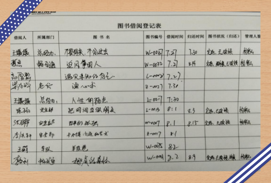 員工們把在閱讀中吸收的正能量或是新知識、新技術等運用、融入到日常工作和生活當中,進一步打開我們認識世界、審視人生的廣闊視角和思維。今后鼓勵每位借書員工,讀書后寫出讀后感,選出優秀的、深刻的作品在晨讀時間與大家一起分享。